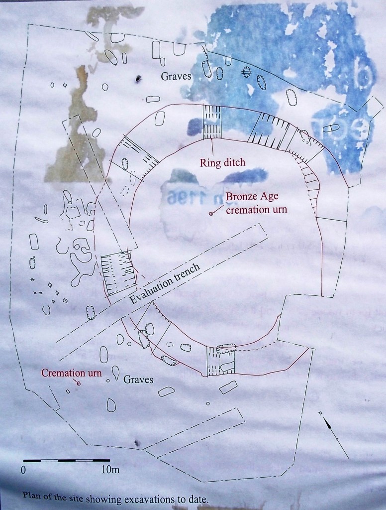 ring ditch. The style of the pottery suggests that the barrow probably dates from the early Bronze Age, around 1700 BC. As the ring