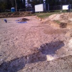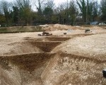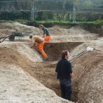 Preliminary work in the form of trial (evaluation) trenches identified a Bronze Age ring ditch and a small number of Saxon graves.
