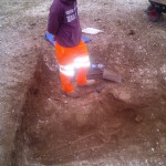 Once excavated, the ring ditch proved to be 29m in diameter with the ditch itself being c.3.5m wide and 1.5m deep. In the centre,